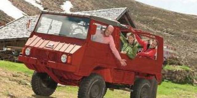 Bildunterschrift Vom Südtiroler MONDI-HOLIDAY HOTEL Tirolensis aus mit dem »Gästemobil« in die Berge – der frühere Schweizer Feuerwehr-Wagen ist bestens geländegängig und bringt Urlauber sicher in höchste Höhen!
