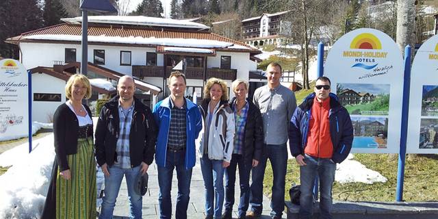 Ließen sich vom innovativen Konzept des MONDI-HOLIDAY HOTEL Oberstaufen inspirieren: Von rechts nach links Eskil Solberg, Sales- und Marketingchef des Skigebiets Kvitfjell – Trond Ostby, Tourismuschef des Orts Hemsedal – Helle Wagner von der Marketingabteilung der StenaLine-Reederei – Birgitte Ellyton, Marketing norwegischer Tourismusverband – Henrik Verner Jensen, Marketingleiter des norwegischen Tourismusverbands und Torben Andersen, Tourismuschef der Skiregion Rauland mit Ursula Christmann-Back, Direktorin des MONDI-HOLIDAY HOTEL Oberstaufen.